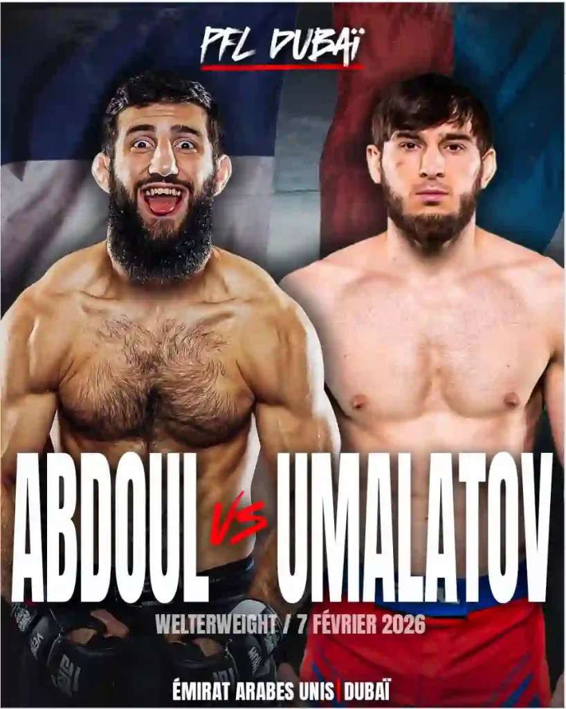 À l’occasion de son retour à la compétition, Abdoul Abdouraguimov s’apprête à relever un défi de taille sur la scène internationale. Le « Lazy King » sera opposé au redoutable Magomed Umalatov lors de l’événement PFL Road to Dubai, programmé le 7 février 2026. Ce duel très attendu mettra aux prises deux profils parmi les plus dangereux de la catégorie welterweight, dans un affrontement qui s’annonce aussi tactique qu’explosif. Pour Abdouraguimov, il s’agit d’un test majeur face à un adversaire réputé pour sa rigueur et son efficacité, dans un contexte où chaque victoire peut avoir un impact déterminant sur la suite de sa carrière.