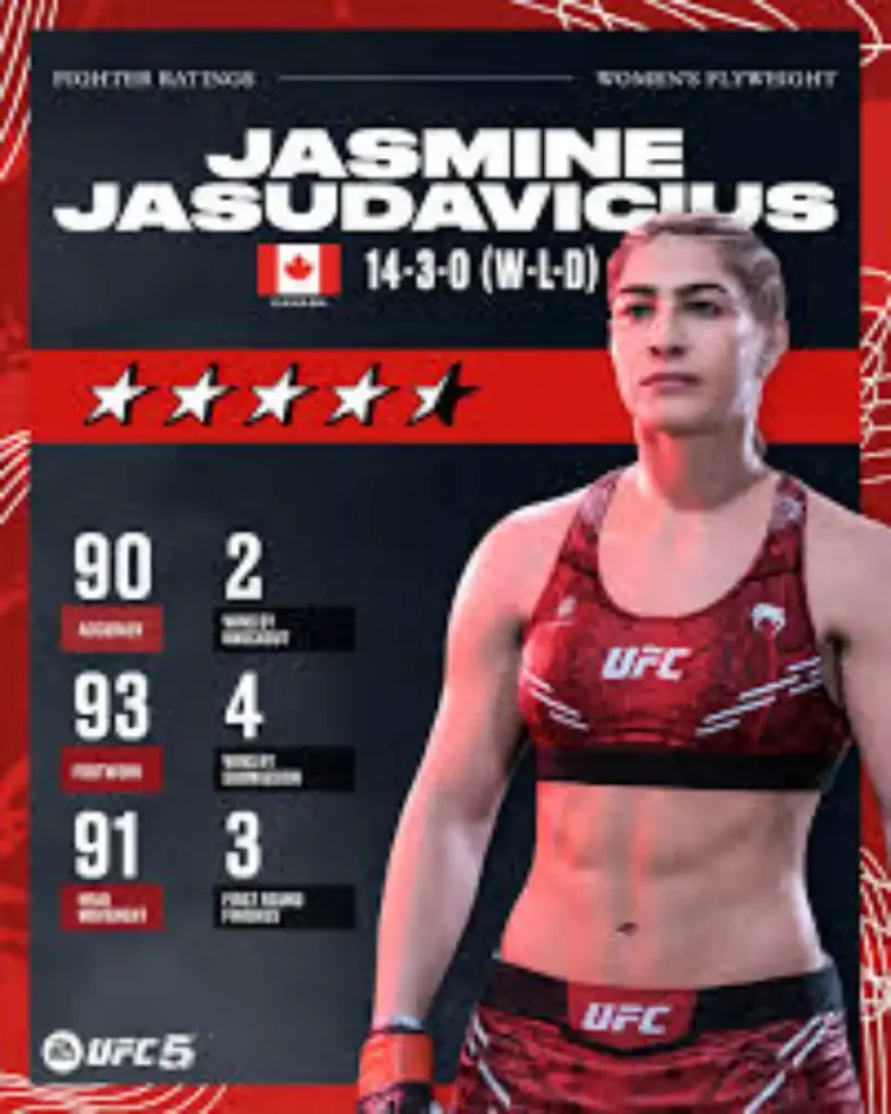 Oui, Jasmine Jasudavicius est bien jouable dans EA Sports UFC 5, le jeu vidéo de combat développé par EA Sports. La combattante canadienne a été intégrée au roster officiel via une mise à jour de contenu, déployée dans le cadre de l’actualité UFC et notamment autour de l’événement UFC 321, comme l’a confirmé l’UFC.